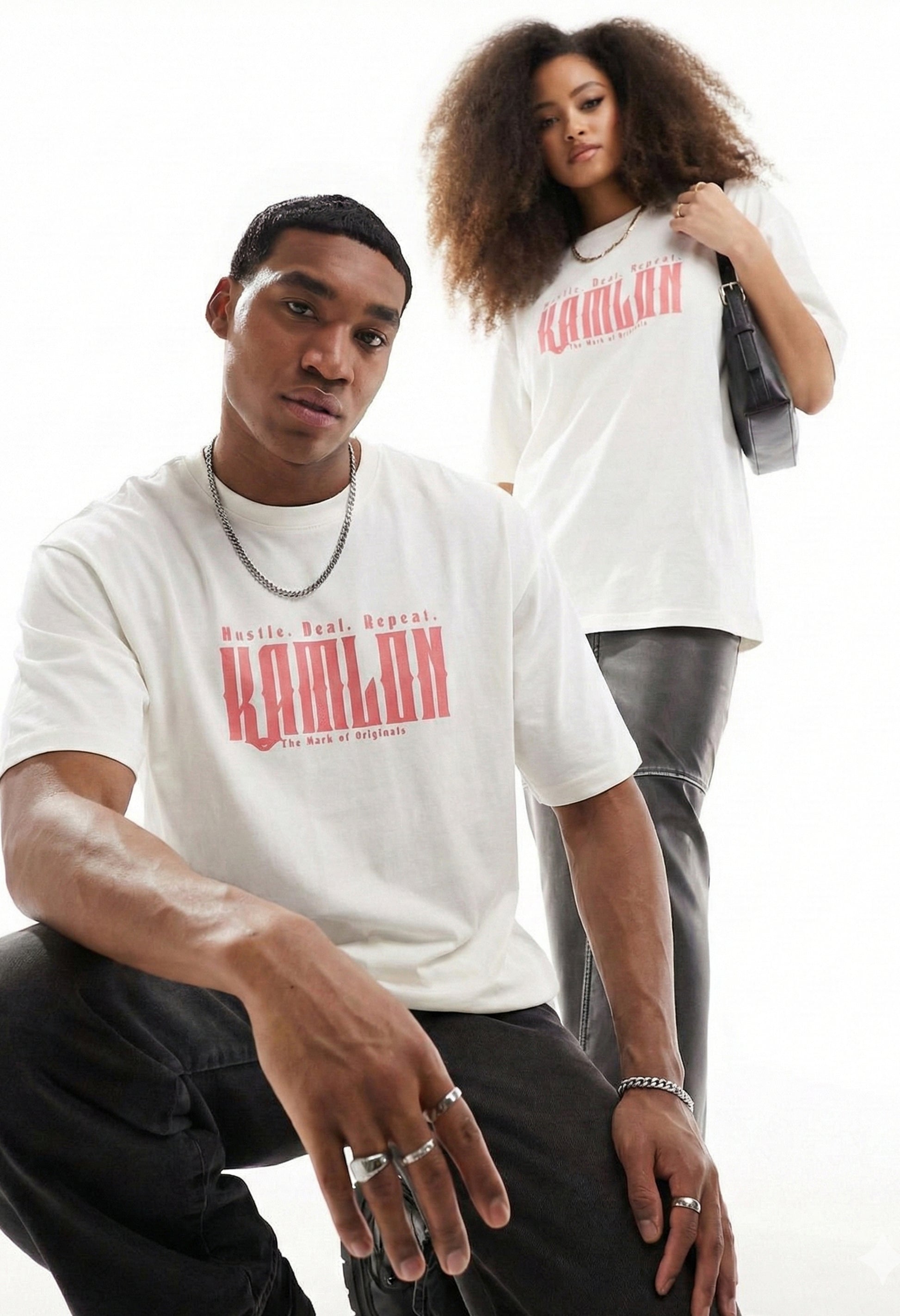 Discover minimal streetwear sophistication with the Kamlon White Oversized T-Shirt. This premium cotton tee combines timeless versatility with contemporary design, featuring the signature Kamlon brand logo in raised puff print positioned perfectly on the chest.