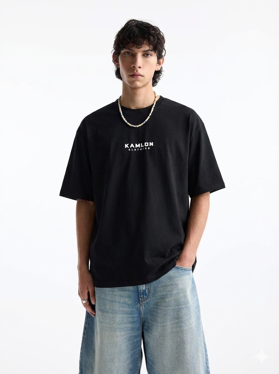 Kamlon Black Cotton Terry T-Shirt – Premium 240 GSM Streetwear